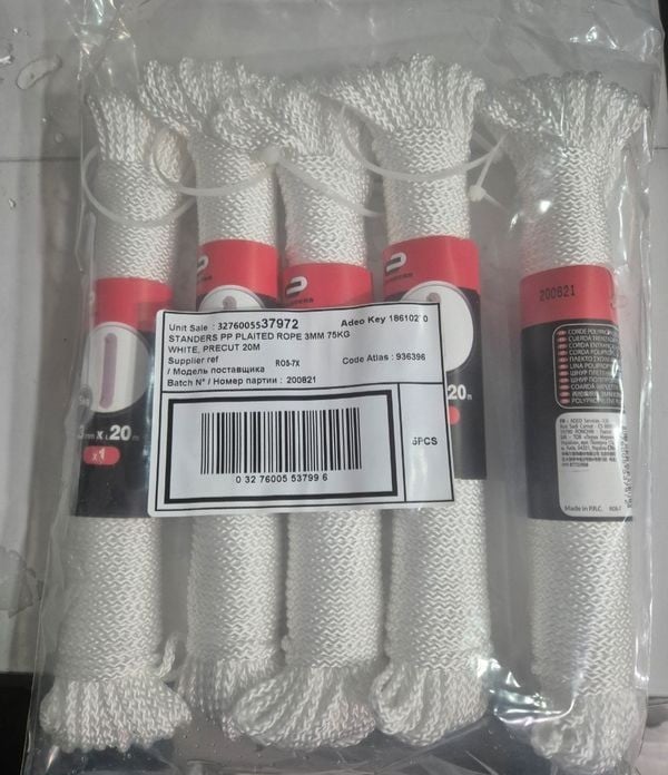 Lot de 5 Cordes polypropylène tressées STANDERS Diam 3mm x L.20m BLANCHE Torsadé