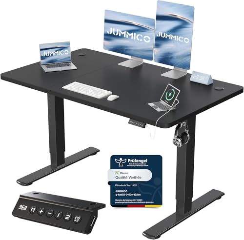 JUMMICO Escritorio Elevable Eléctrico Con Cargador USB, Escritorio Regulable en Altura Ergonomica Escritorio de Pie Ajustable Smart Panel Con Funciones de Memoria, Standing Desk 120 x 60 cm, Negro