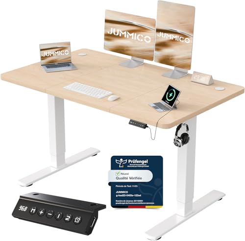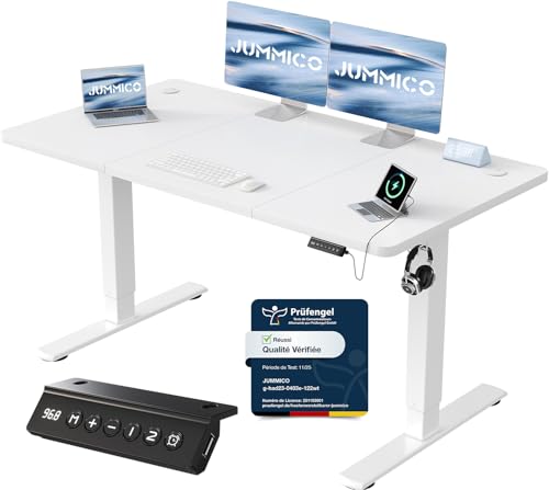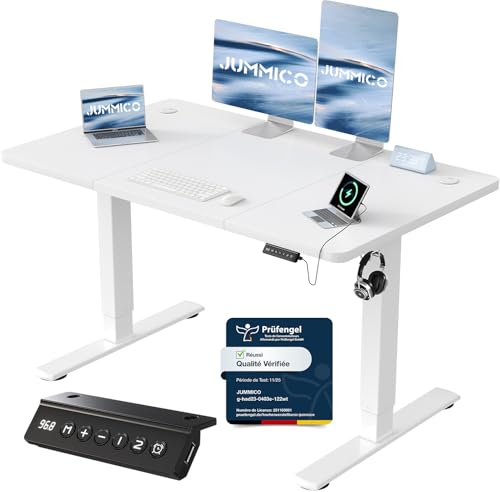 JUMMICO Escritorio Elevable Eléctrico Con Cargador USB, Escritorio Regulable en Altura Ergonomica Escritorio de Pie Ajustable Smart Panel Con Funciones de Memoria, Standing Desk 120 x 60 cm, Blanco