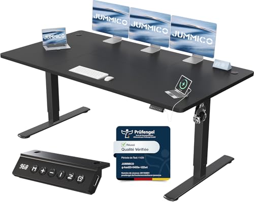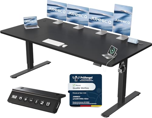 JUMMICO Escritorio Elevable Eléctrico Con Cargador USB, Escritorio Regulable en Altura Ergonomica Escritorio de Pie Ajustable Smart Panel Con Funciones de Memoria, Standing Desk 180 x 80 cm, Negro