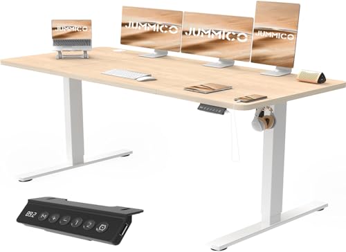 JUMMICO Escritorio Elevable Eléctrico Con Cargador USB, Escritorio Regulable en Altura Ergonomica Escritorio de Pie Ajustable Smart Panel Con Funciones de Memoria, Standing Desk 160 x 70 cm, Beige