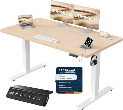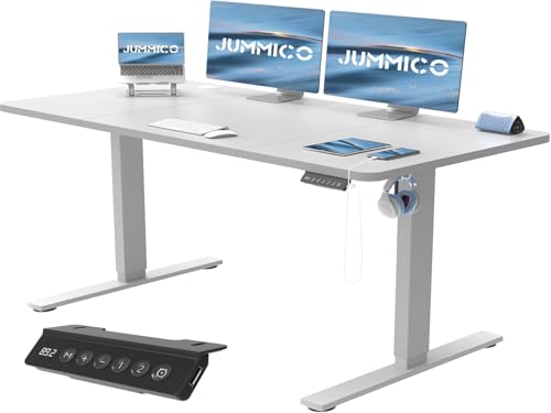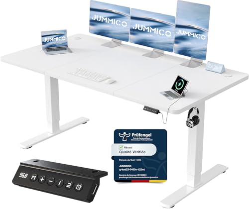 JUMMICO Escritorio Elevable Eléctrico Con Cargador USB, Escritorio Regulable en Altura Ergonomica Escritorio de Pie Ajustable Smart Panel Con Funciones de Memoria, Standing Desk 140 x 60 cm, Blanco