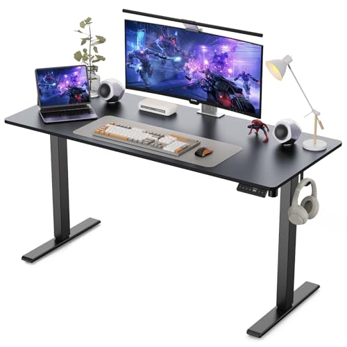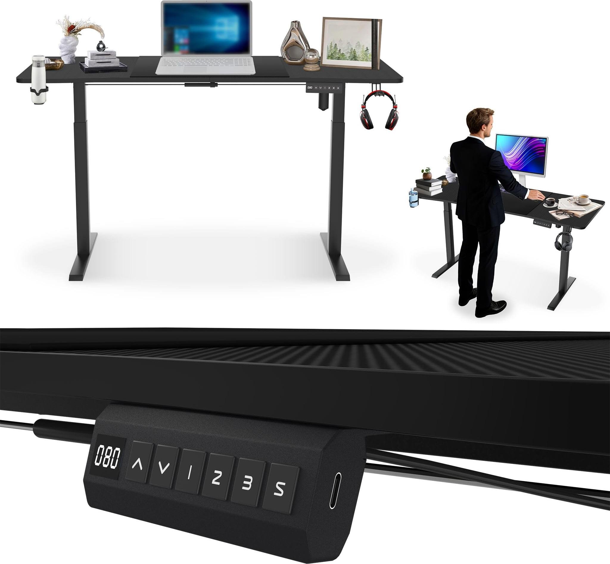 FIVMEN Bureau électrique réglable en hauteur,Bureau d'ordinateur réglable Standing Desk avec prise de charge de type C,,Noir, 140 x 60 cm