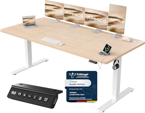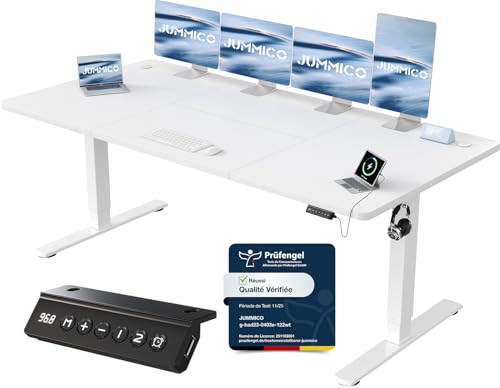 JUMMICO Escritorio Elevable Eléctrico Con Cargador USB, Escritorio Regulable en Altura Ergonomica Escritorio de Pie Ajustable Smart Panel Con Funciones de Memoria, Standing Desk 180 x 80 cm, Blanco
