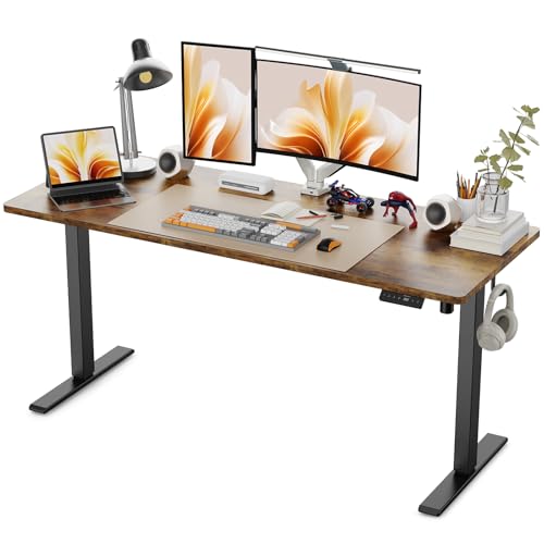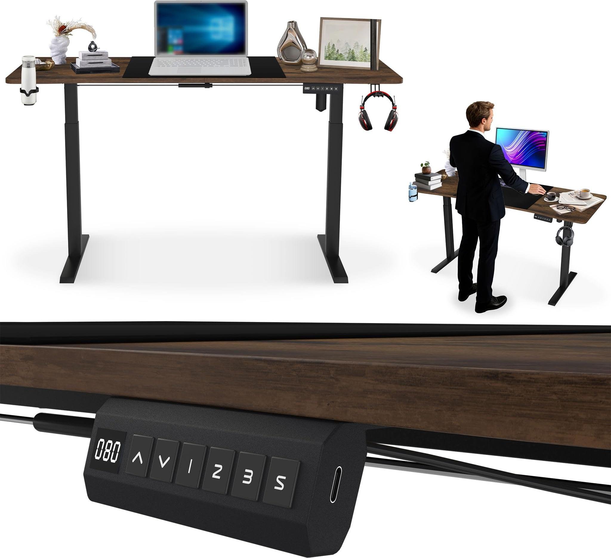 FIVMEN Bureau à hauteur réglable électrique,Bureau d'ordinateur réglable Standing Desk,crochet pour casque d'écoute pour bureau (brun vintage, 160 x 60 cm)