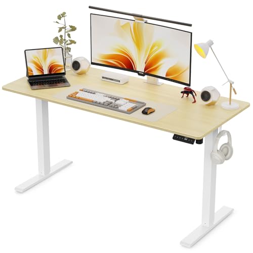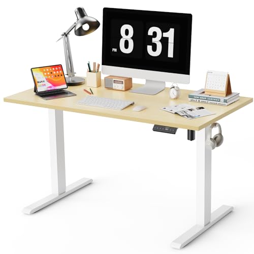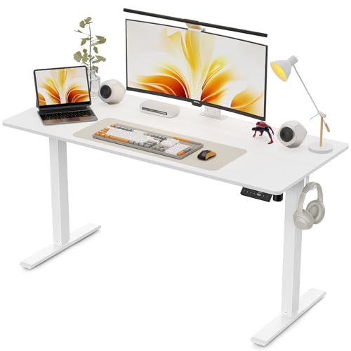 FIVMEN Bureau électrique réglable en hauteur,Bureau d'ordinateur réglable Standing Desk avec prise de charge de type C,fonction mémoire(Blanc, 140 x 60 cm)