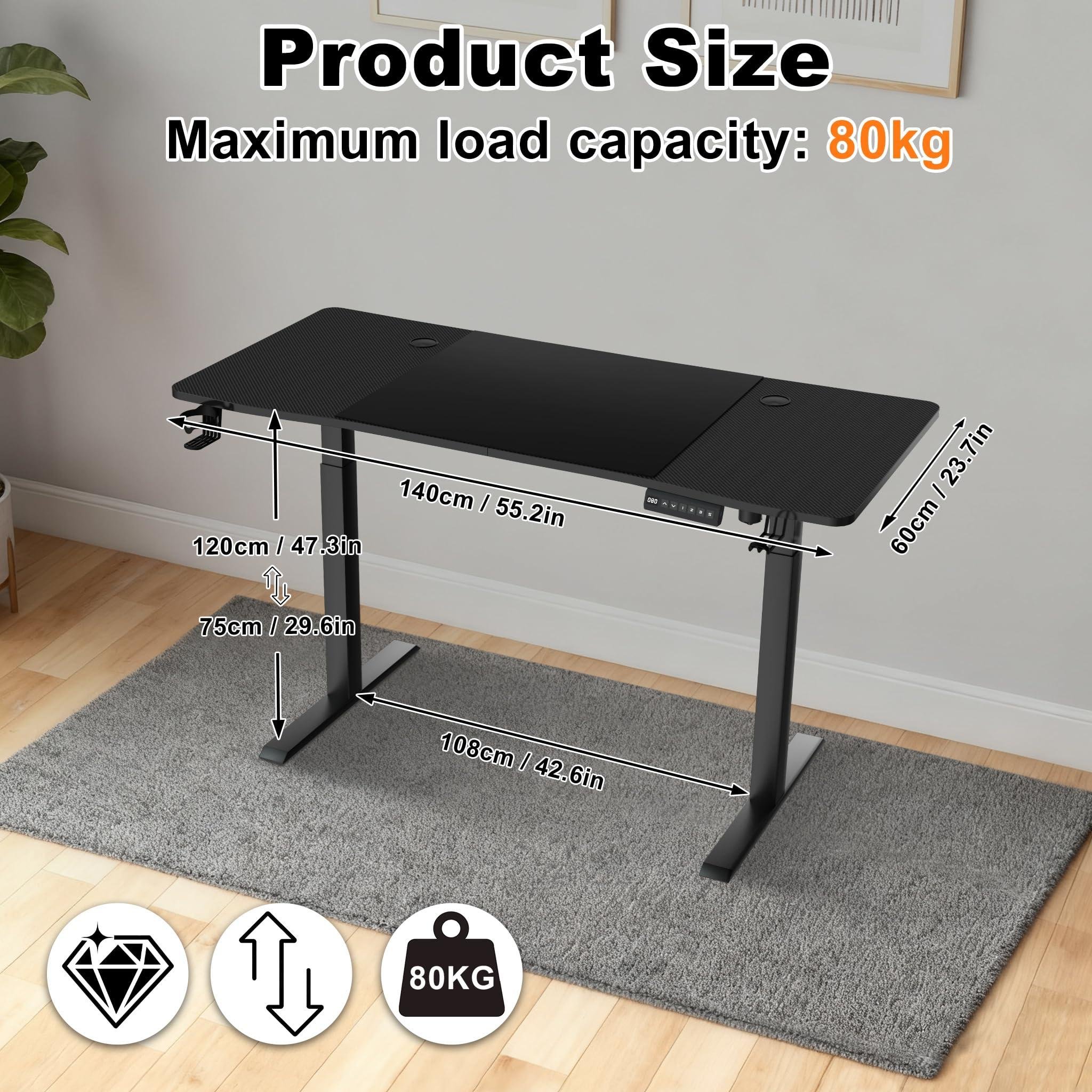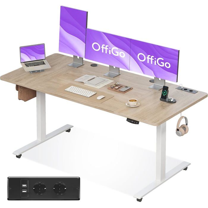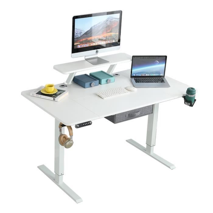 OffiGo Bureau électrique avec tiroirs et support d'écran, hauteur réglable 120cm, Standing Desk avec