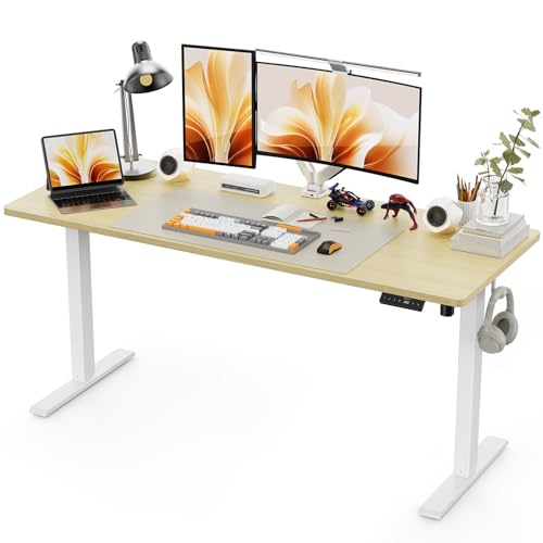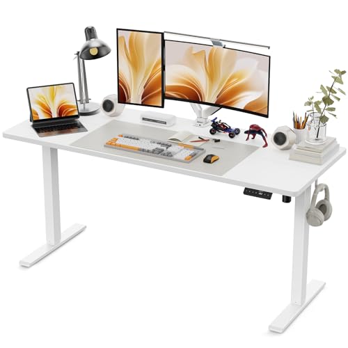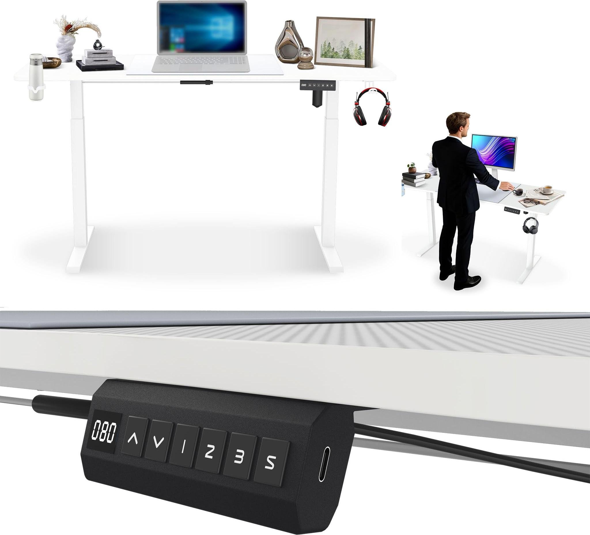 FIVMEN Bureau électrique réglable en hauteur,Bureau d'ordinateur réglable Standing Desk avec prise de charge de type C,fonction mémoire(Blanc, 160 x 60 cm)