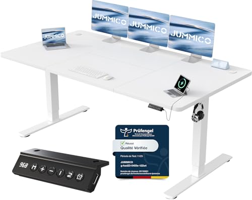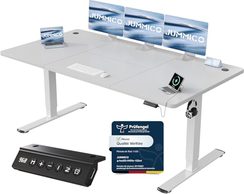 JUMMICO Escritorio Elevable Eléctrico Con Cargador USB, Escritorio Regulable en Altura Ergonomica Escritorio de Pie Ajustable Smart Panel Con Funciones de Memoria, Standing Desk 160 x 70 cm, Blanco