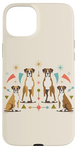Boxer, Chien Moderne du Milieu du siècle, Atomic Starburst Coque pour iPhone 15 Plus