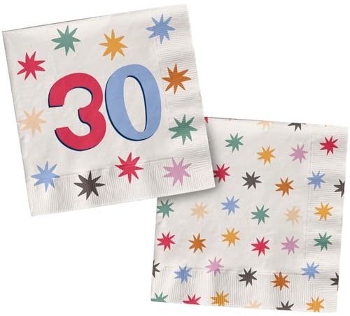 Folat 26875 Décoration Anniversaire blanche avec étoiles colorées - Serviettes - 18 - Starburst - 33 x 33 cm - 20 pièces - Vaisselle Accessoires pour Party Fête d'anniversaire pour enfants et adultes