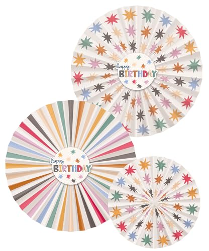 Folat 26866 Décoration blanche avec étoiles colorées-Lot de Roues Starburst-3 pièces-Déco Accessoires pour Party Fête d'anniversaire pour enfants et adultes, Multicolore
