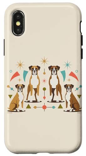 Boxer, Chien Moderne du Milieu du siècle, Atomic Starburst Coque pour iPhone XS Max