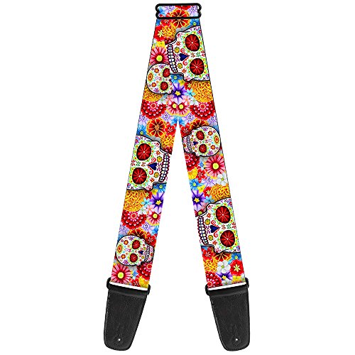 Buckle-down Sangle de guitare – Sucre Tête de mort Starburst Blanc/Multi Couleur – 5,1 cm de large – 29–137,2 cm de long