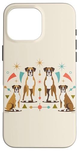 Boxer, Chien Moderne du Milieu du siècle, Atomic Starburst Coque pour iPhone 16 Pro Max