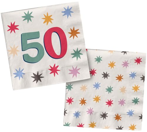 Folat 26879 Décoration Anniversaire blanche avec étoiles colorées - Serviettes - 60 - Starburst - 33 x 33 cm - 20 pièces - Vaisselle Accessoires pour Party Fête d'anniversaire pour enfants et adultes