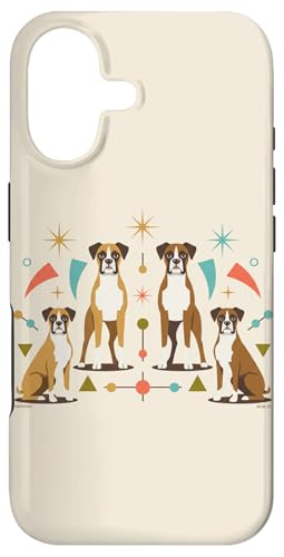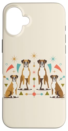 Boxer, Chien Moderne du Milieu du siècle, Atomic Starburst Coque pour iPhone 16 Plus