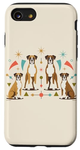 Boxer, Chien Moderne du Milieu du siècle, Atomic Starburst Coque pour iPhone SE (2020) / 7/8