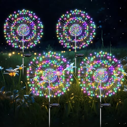 HELESIN Solar Starburst Lights, 105 LED Powered 35 Copper Wires String Landscape Light-DIY Flowers Fireworks Decoration for Outdoor Garden Home Walkway Patio Lawn Backyard (Rainbow Colorful, 4Pack)