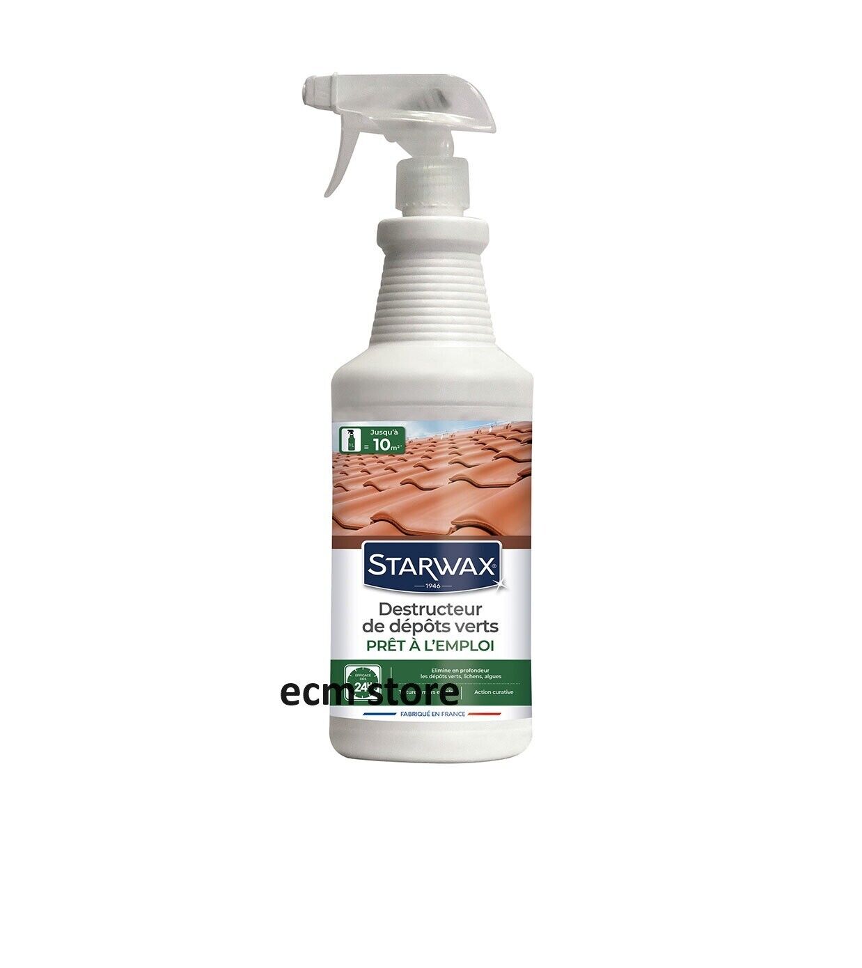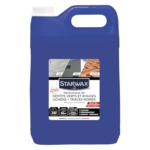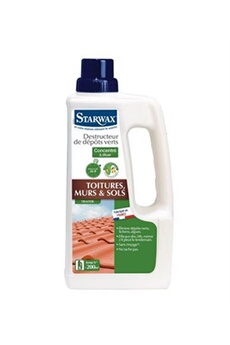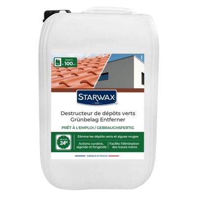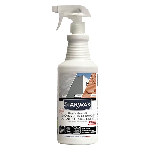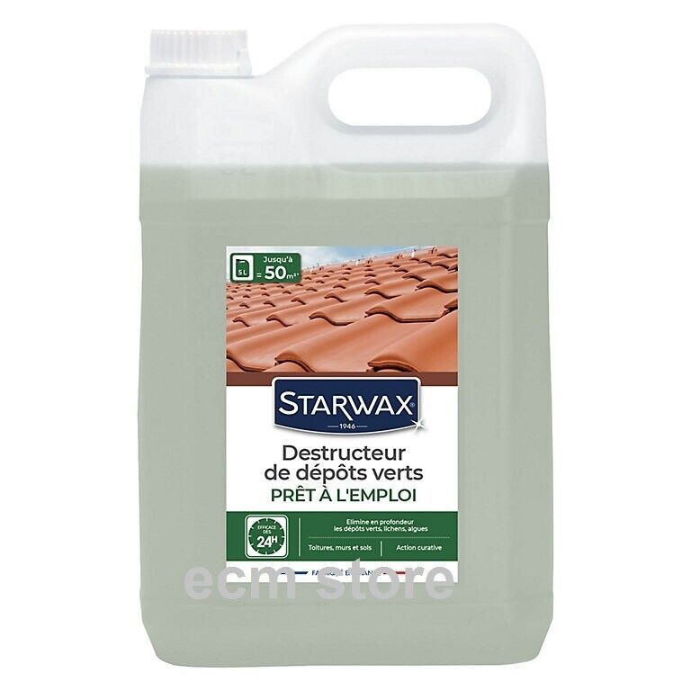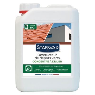 STARWAX - Destructeur de dépôts verts - Prêt à l'emploi - Elimine les dépôts verts et algues rouges - Toiture, murs et sols - Action curative algicide et fongicide - Efficace en 24h - 1L= 10m² - 1L