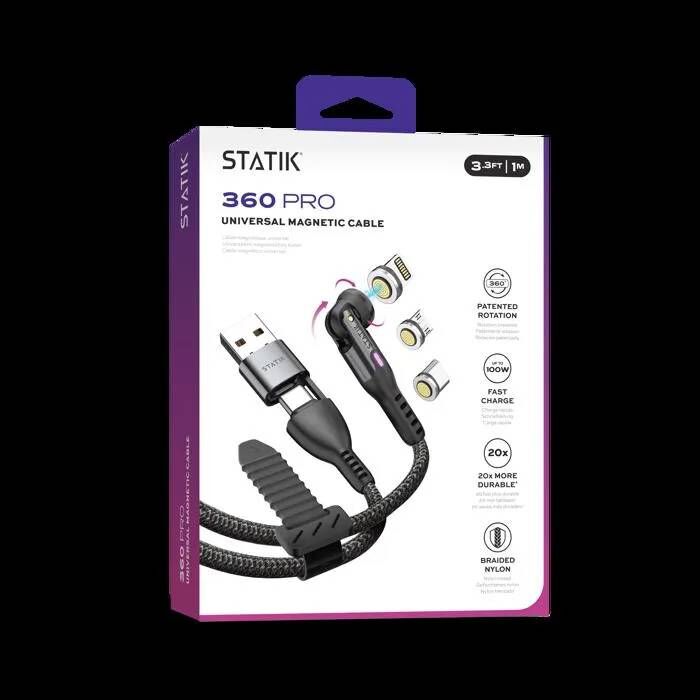 Statik 360 Pro Câble de charge magnétique – Chargeur de type C à charge rapide 3 en 1, câble USB C vers USB C, micro USB et conseils iProduct, adaptateur USB A, compatible avec tous les appareils