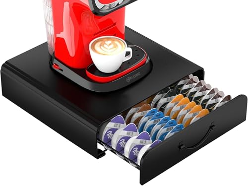 Tiroir à capsules de café HFHOME compatible avec Tassimo Capacité 64 dosettes - Support Tassimo et tiroir de rangement pour dosettes, organisateur de station de café au design anti-vibration - Noir