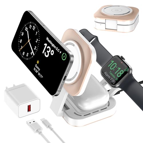 Chargeur sans Fil, Station de Charge Magnétique sans Fil, Station de Charge Rapide Mag-Safe Compatible avec iPhone 17 16 15 14 13 12 Series, AirPods Pro 2, AirPods 3