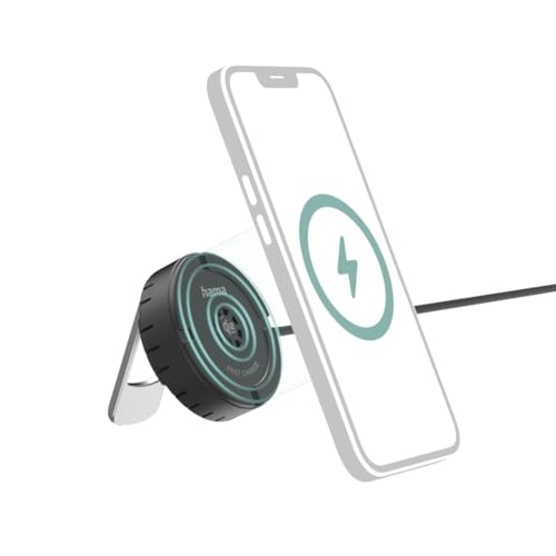 Hama Chargeur sans Fil 25W, Qi2, Compatible MagSafe, Charge Ultra Rapide à Induction, Magnétique, Refroidissement Puissant, Fonction Chevalet, Station de Charge Wireless en Aluminium, Noir