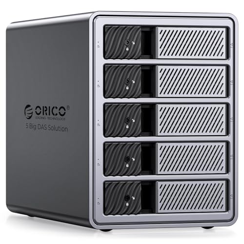 ORICO Boîtier pour Disque Dur 5 Baies 40Gbps pour 5 Disques Durs, Station d'accueil pour Disque Dur 3,5 Pouces jusqu'à 22TB, Supporte DaisyDChain, sans Disque Dur (9858T3)