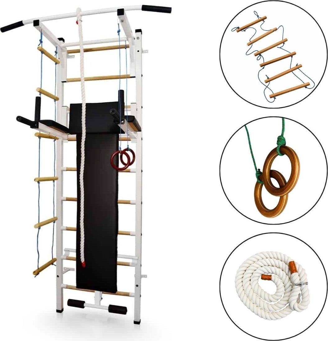 Espalier+ station de dips + barre fixe | banc d'entraînement I Fitness | mur d'escalade pour enfants