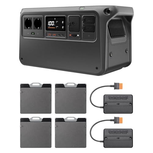Station électrique portable DJI Power 1000 V2 avec quatre panneaux solaires pliables de 200 W, batterie LFP de 1 024 Wh/2 600 W, 2 modules adaptateur de panneau solaire, utilisation en extérieur