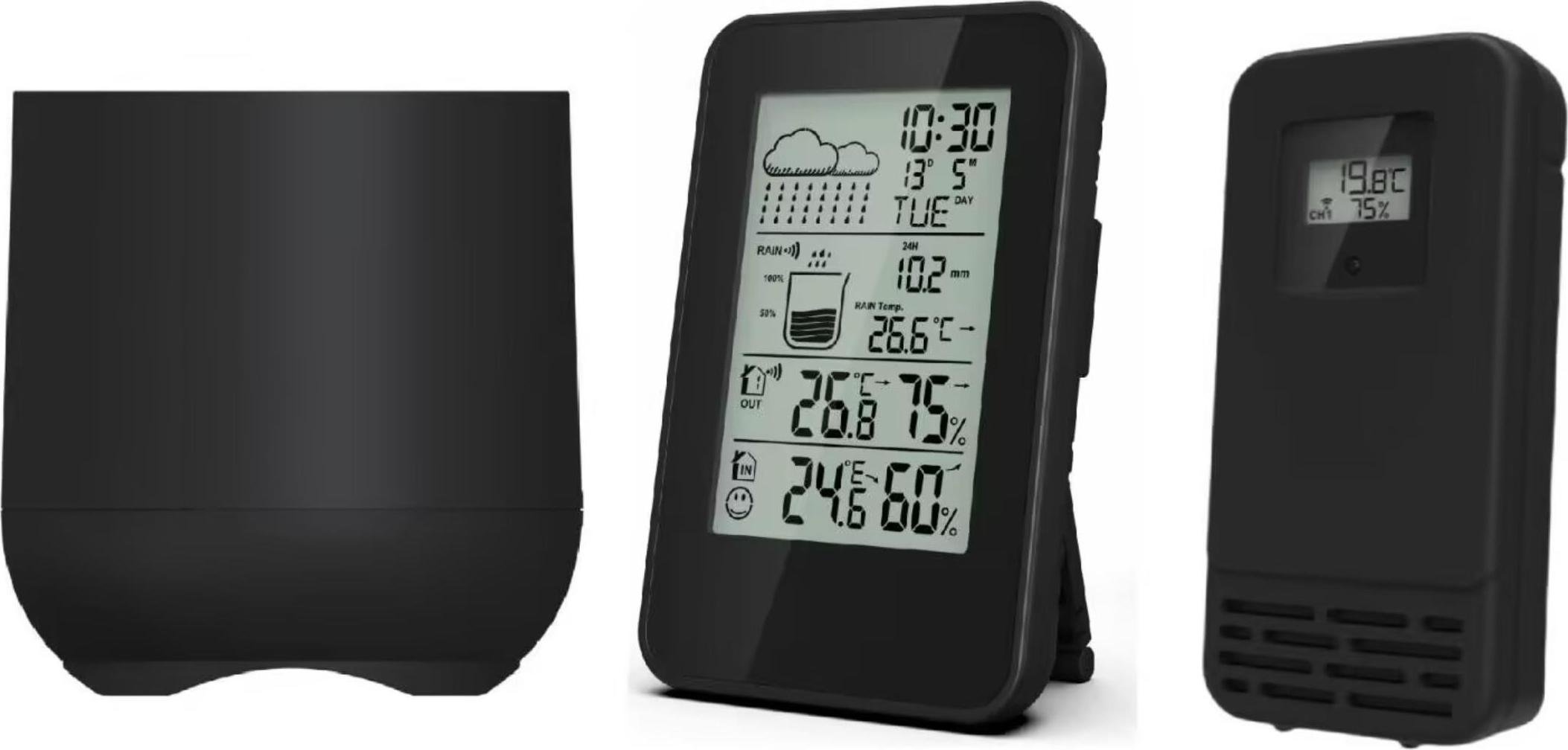 Station meteo, reveil, horloge et calendrier. Ecran couleur. - - Noir