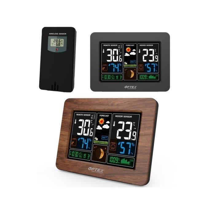 STATION METEO INT/EXT DECO BOIS et Noire Horloge PRESSION ATMO-hygromètre + Sonde EXT Digitale