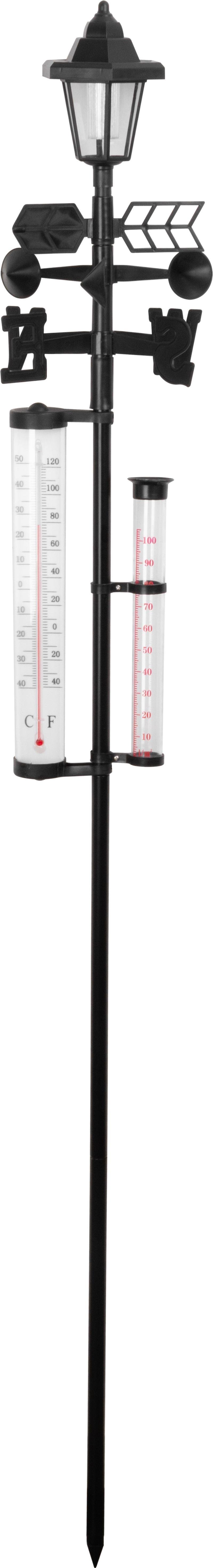 Spetebo Station météo solaire 5 en 1 noire - 158 x 24 cm - Lampe de jardin - Indicateur de direction du vent - Thermomètre et pluviomètre