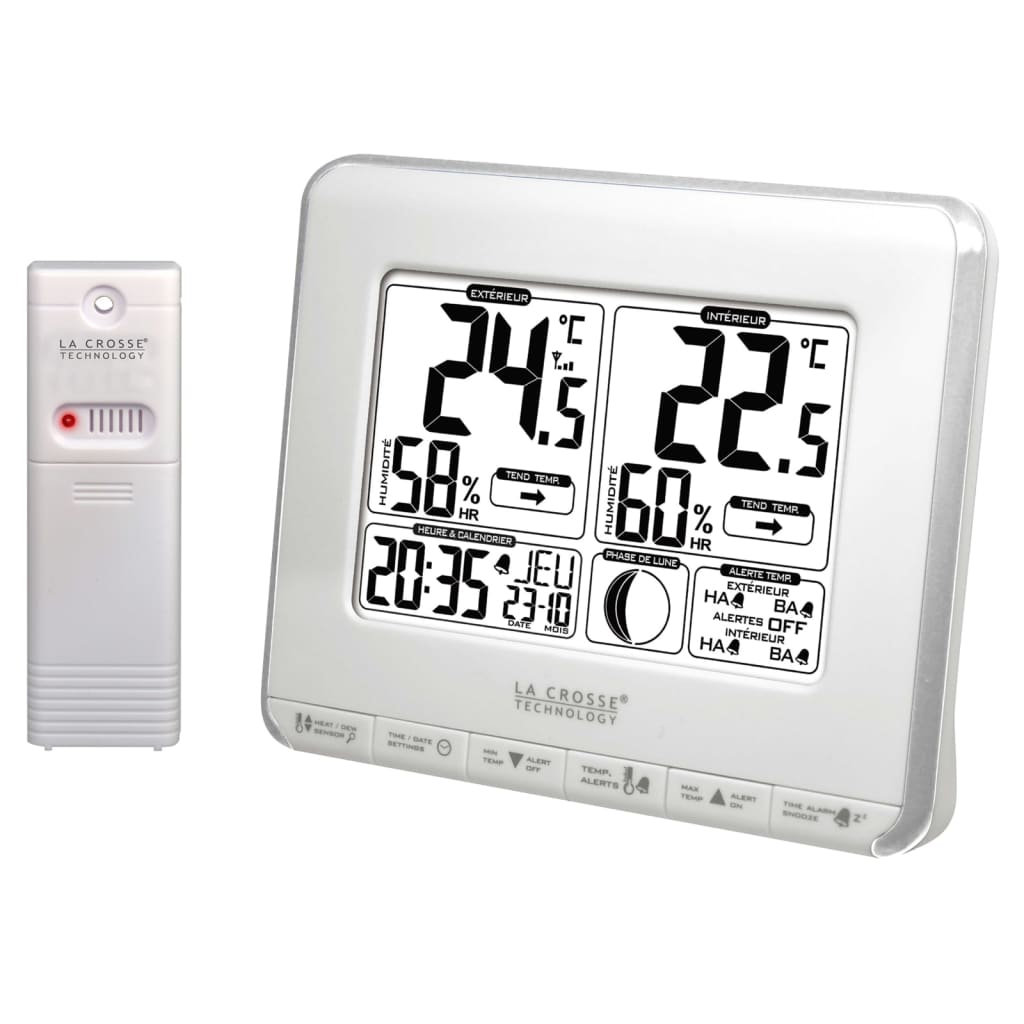 Velleman LA CROSSE - STATION METEO AVEC PHASE LUNAIRE, ALARMES DE TEMPERATURE ET INDEX DE HAUTE TEMPERATURE