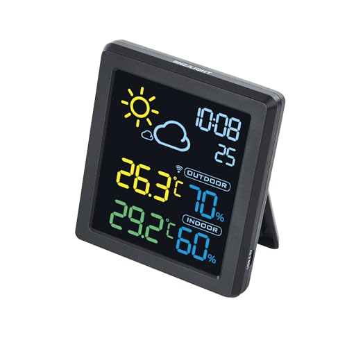 Binnan Station Météo Interieur Exterieur sans Fil, Station de Prévision Numérique des Couleurs, avec Capteur Extérieur, Temps, Température, Humidité, Baromètre, Réveil