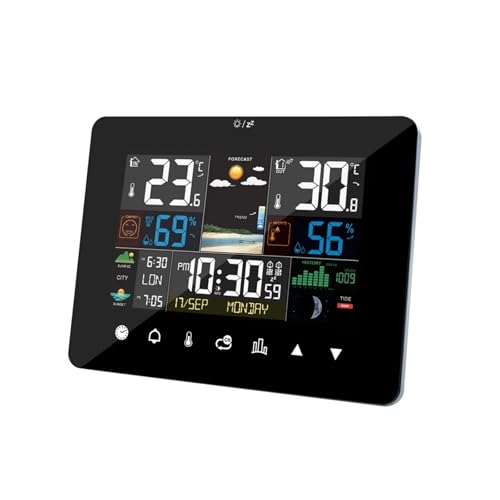 VXDEFP Station Meteo, Station météo Domestique avec Horloge Atomique, thermomètre, Grand écran Couleur, Station de prévision numérique for Maison Patio