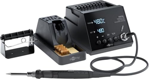 goobay Station de soudage numérique 70 W, 160–480 °C, chauffe en 8 secondes, affichage LED, fonction mémoire, réglage par paliers de 1 °C, fer à souder et accessoires inclus, 78624