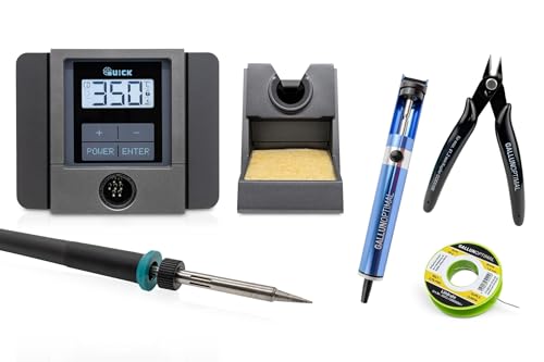 QUICK TS1100 Station de soudage numérique ESD 70-90 W 200-450 °C avec réglage par capteur - Station de soudage SMD calibrée avec 3 mémorisations de température fixe - Panne à souder de 0,5 mm et kit