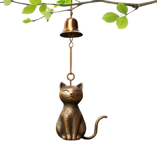 Décorations De Carillon À Chat pour Extérieur - Ornements Élégants pour Jardin Porte Et Balcon | Statue Animaux avec Cloches Extérieures en Métal pour Maison Et Terrasse