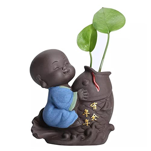 Pot de fleurs Pots de plantes Jardinière en céramique d'extérieur Pot en céramique Sculpture décorative moderne Ornements pour animaux de compagnie Petite statue de Bouddha Figurine de moine Décoratio
