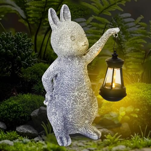 Libershine Sculptures et Statues de Jardin Petits Lapins, Lumières LED à énergie Solaire, Statue Jardin Exterieur en résine synthétique, Deco Animaux, Lapin Decoration