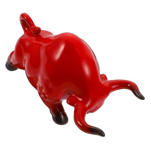 SEWACC Décoration en Céramique Rouge de Taureau Amulette, Ornement Classique pour Maison, Bureau ou Salon de Thé, Statue de Bœuf 1 Pièce, Accessoire Décoratif pour Fête et Espace