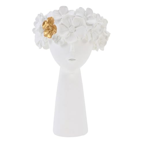 OKUMEYR Vase Décoratif en Résine Blanc, Motif Statue Artistique, 1 Pièce, Support pour Composition de Fleur, Décoration Intérieure Chic pour Salon et Bureau, Objet D’Art Unique