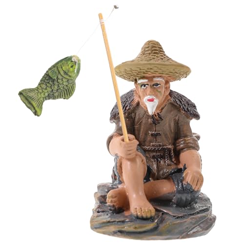 SAFIGLE Figurine Pêcheur en Résine Rétro, Décoration Aquarium et Micro-Paysage, Miniature Ornement Naturel, Statue Pêcheur 1 Pièce, Couleur Aléatoire, Accessoire