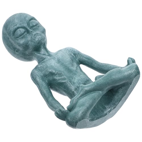 INOOMP Figurine Extraterrestre de Yoga en Résine Grise, Ornement Décoratif pour Bureau et Salon, Statue Originale 1 Pièce, Décoration Intérieure Moderne, Statue de Bureau Artistique