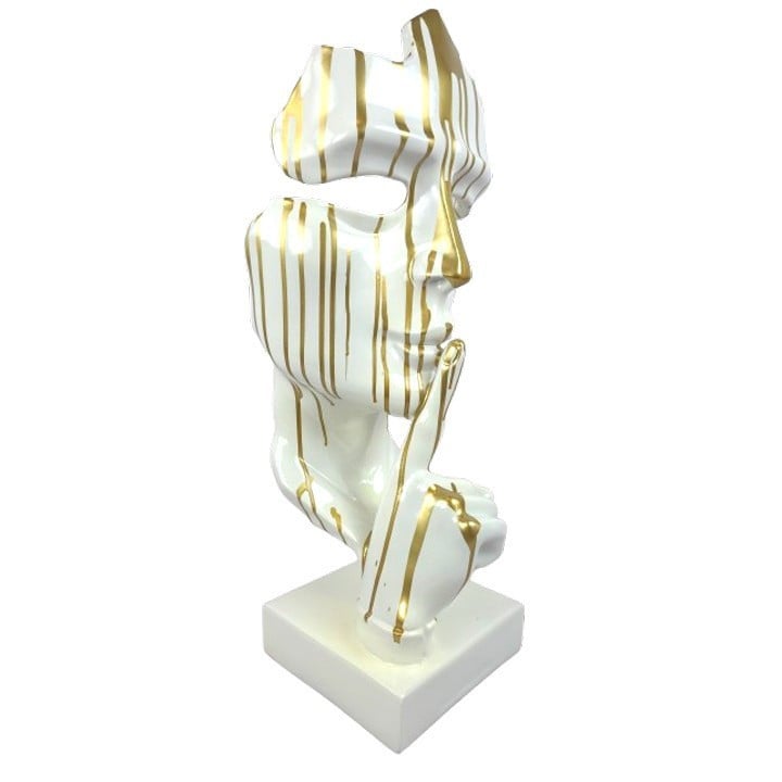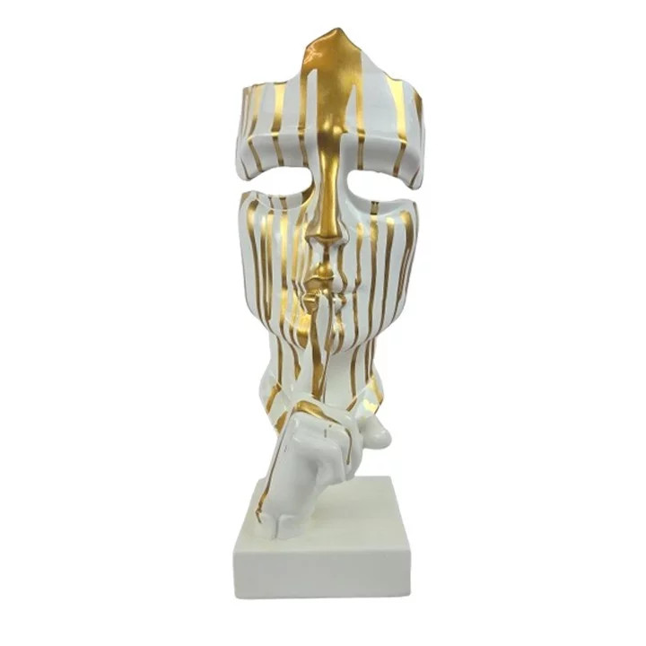 Statue en résine sur socle visage de femme blanc et doré le signe du silence 43
