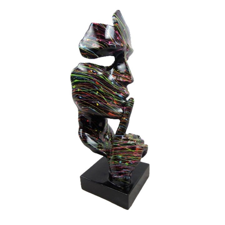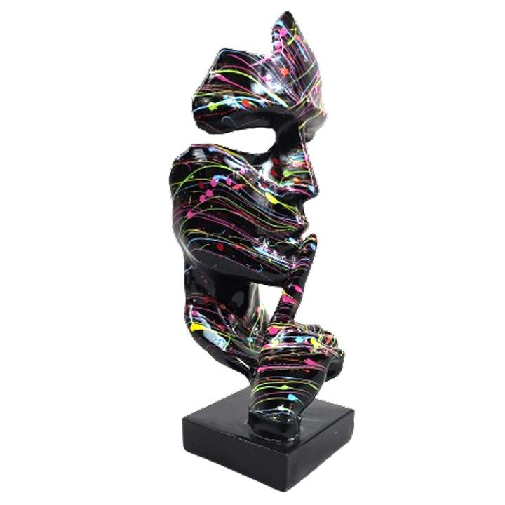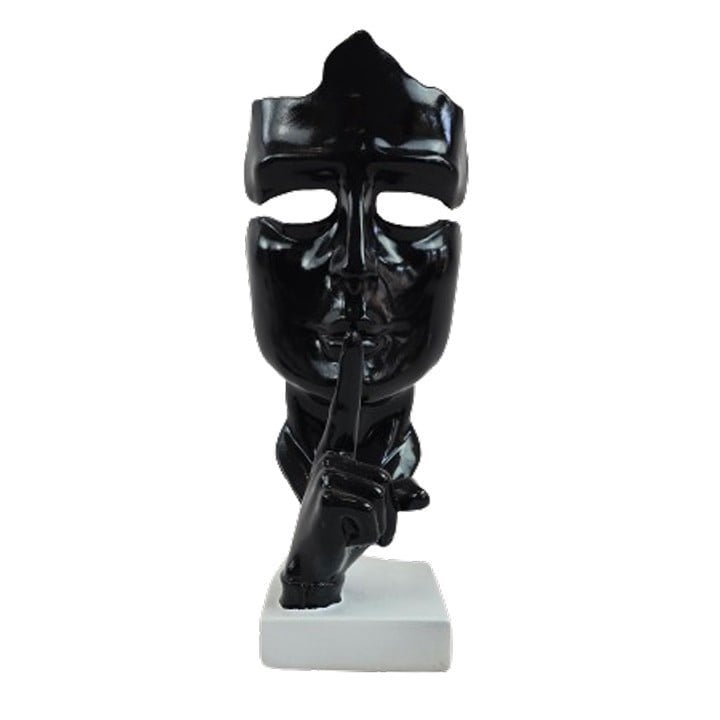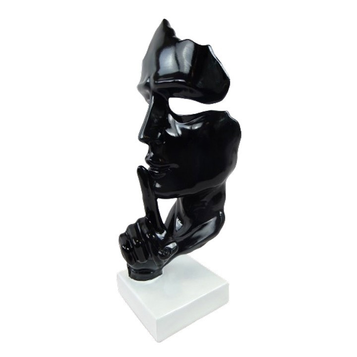 Statue en résine sur socle visage de femme design noir le signe du silence 23 cm