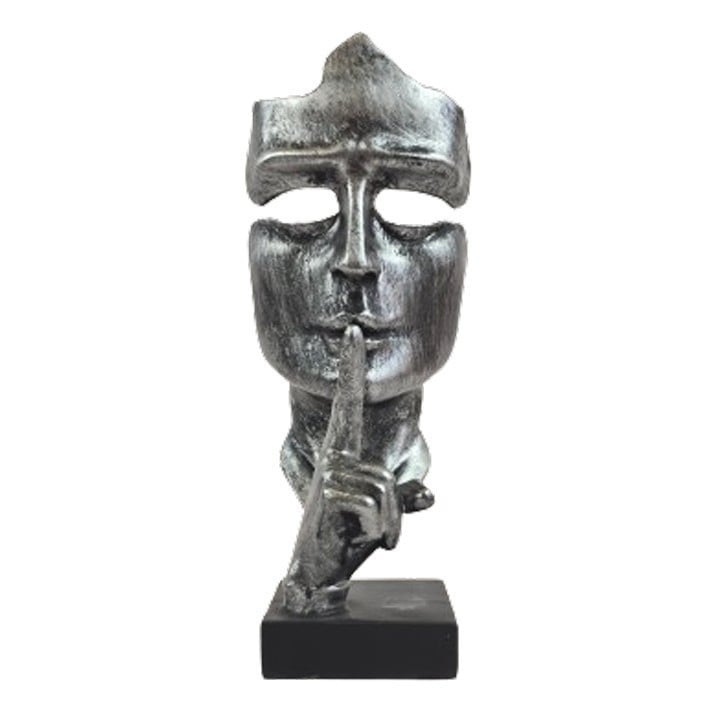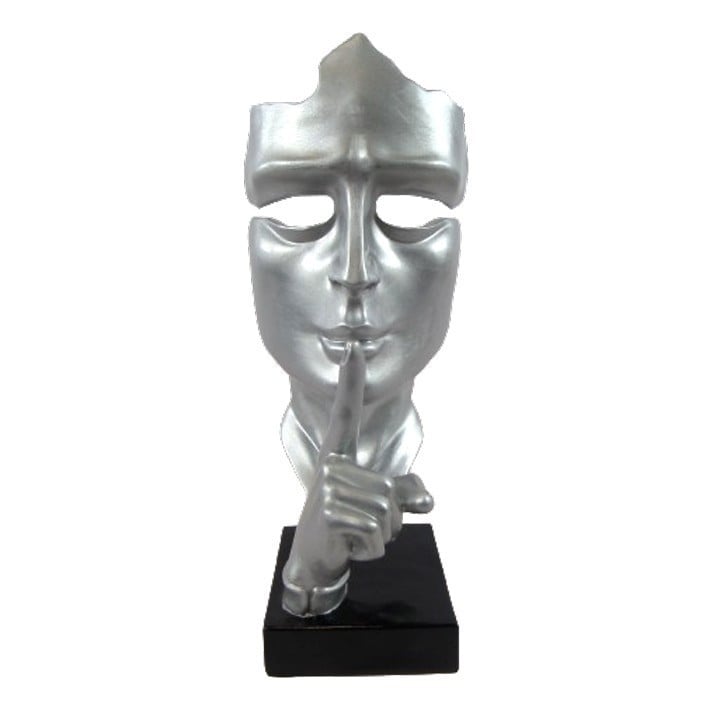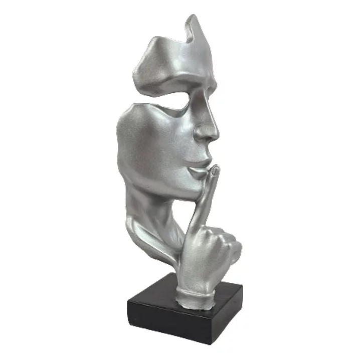 Statue en résine sur socle visage de femme design argent le signe du silence 23