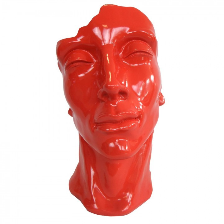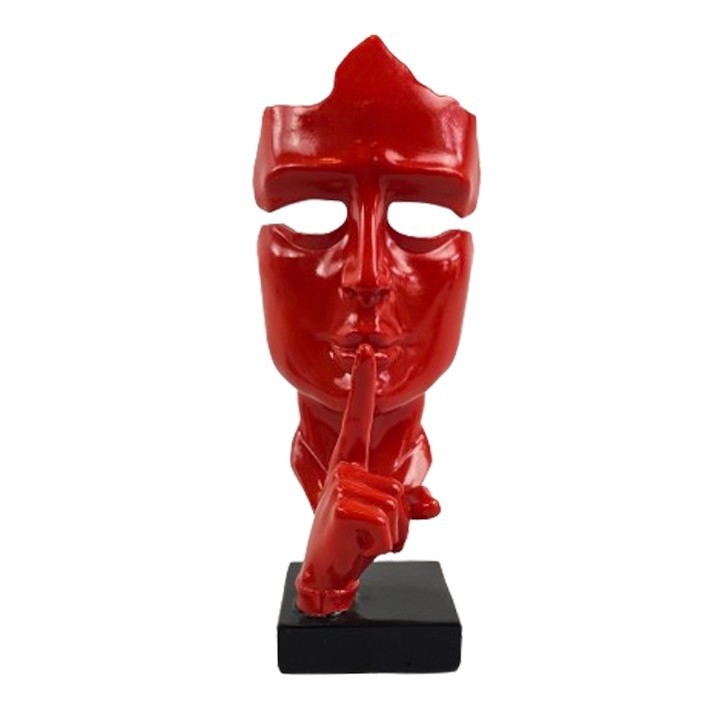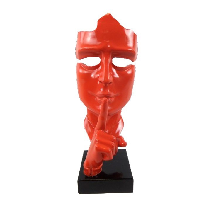 Statue en résine sur socle visage de femme design rouge le signe du silence 23 c